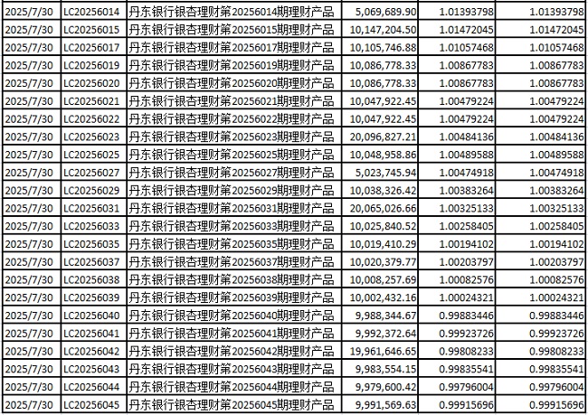 尊敬的投资者: 我行发行的以下理财产品资产净值与份额净值如下: