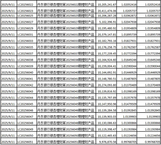 尊敬的投资者: 我行发行的以下理财产品资产净值与份额净值如下: