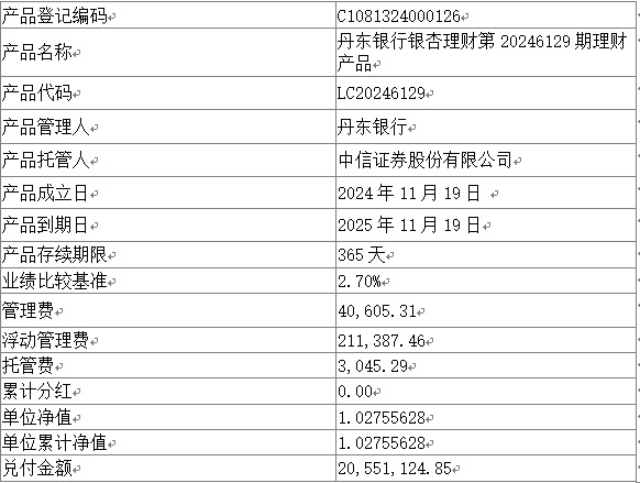 尊敬的客户: 我行下列理财产品已于2025年11月19日进行到期清算兑付,根据与投资者的约定,现将到期情况进行公告,具体披露信息如下。