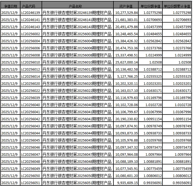 丹东银行银杏理财系列产品净值报告