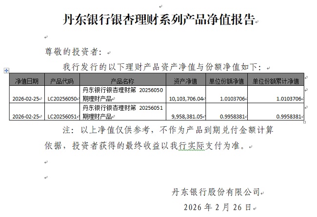 丹东银行银杏理财系列产品净值报告