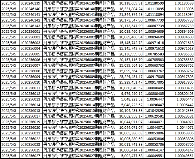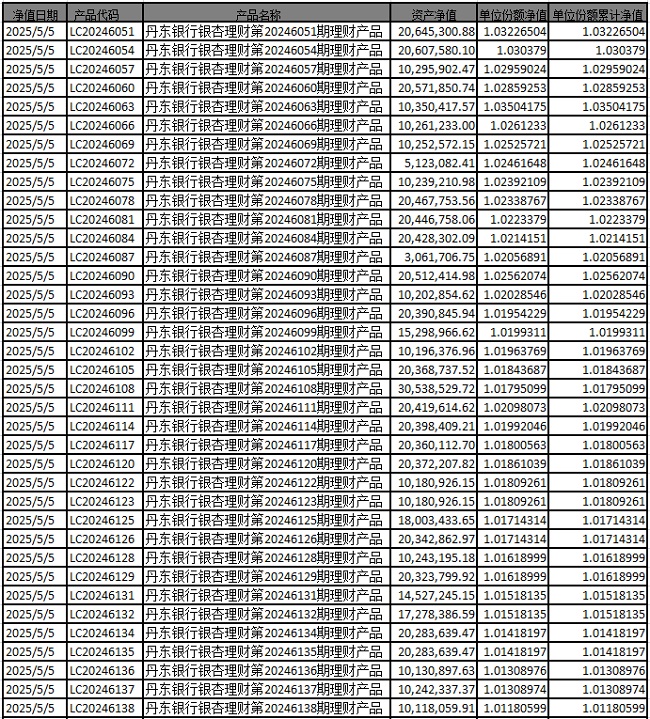 尊敬的投资者: 我行发行的以下理财产品资产净值与份额净值如下: