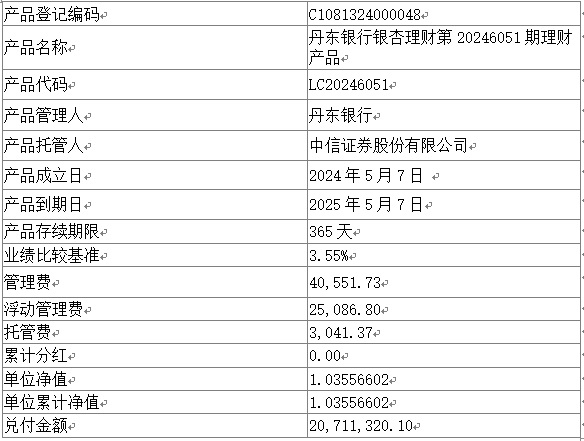 我行下列理财产品已于2025年5月7日进行到期清算兑付,根据与投资者的约定,现将到期情况进行公告,具体披露信息如下。