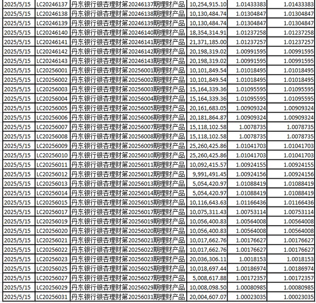 尊敬的投资者: 我行发行的以下理财产品资产净值与份额净值如下: