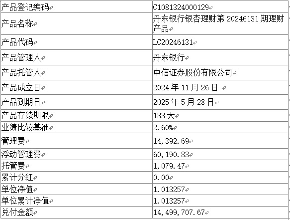 我行下列理财产品已于2025年5月28日进行到期清算兑付,根据与投资者的约定,现将到期情况进行公告,具体披露信息如下。