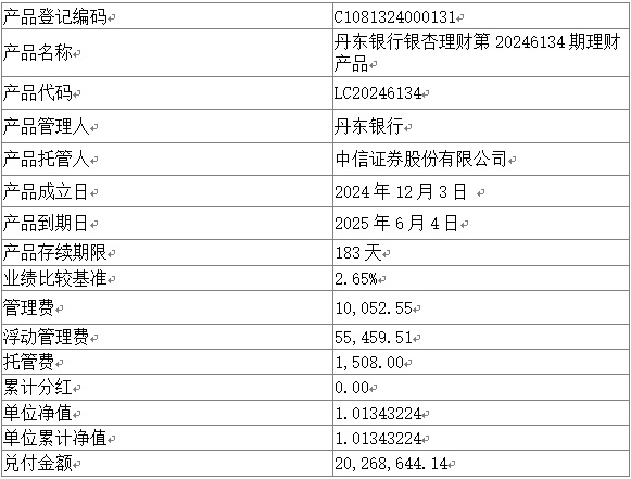 我行下列理财产品已于2025年6月4日进行到期清算兑付,根据与投资者的约定,现将到期情况进行公告,具体披露信息如下。