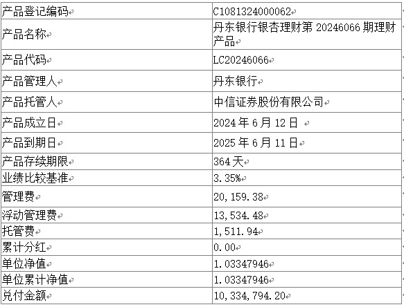 我行下列理财产品已于2025年6月11日进行到期清算兑付,根据与投资者的约定,现将到期情况进行公告,具体披露信息如下。