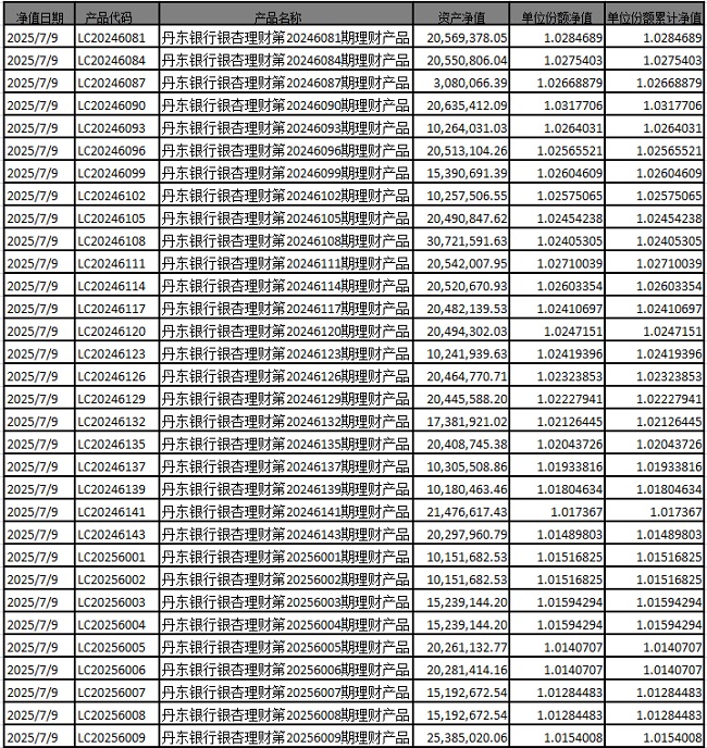 注:以上净值仅供参考,不作为产品到期兑付金额计算依据,投资者获得的最终收益以我行实际支付为准。