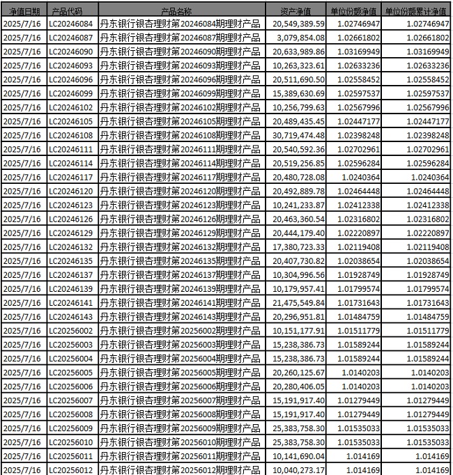 注:以上净值仅供参考,不作为产品到期兑付金额计算依据,投资者获得的最终收益以我行实际支付为准。